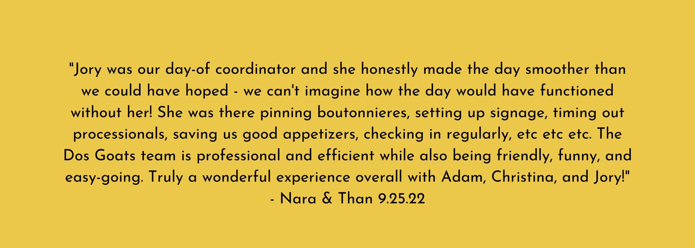 We recently got married 10.30.22 and were able to remain completely present in our day because Jory and the team were there to run the whole thing for us! Our wedding day made us so excited for our couples because we got to experience the gift we give them and it was the absolute best!