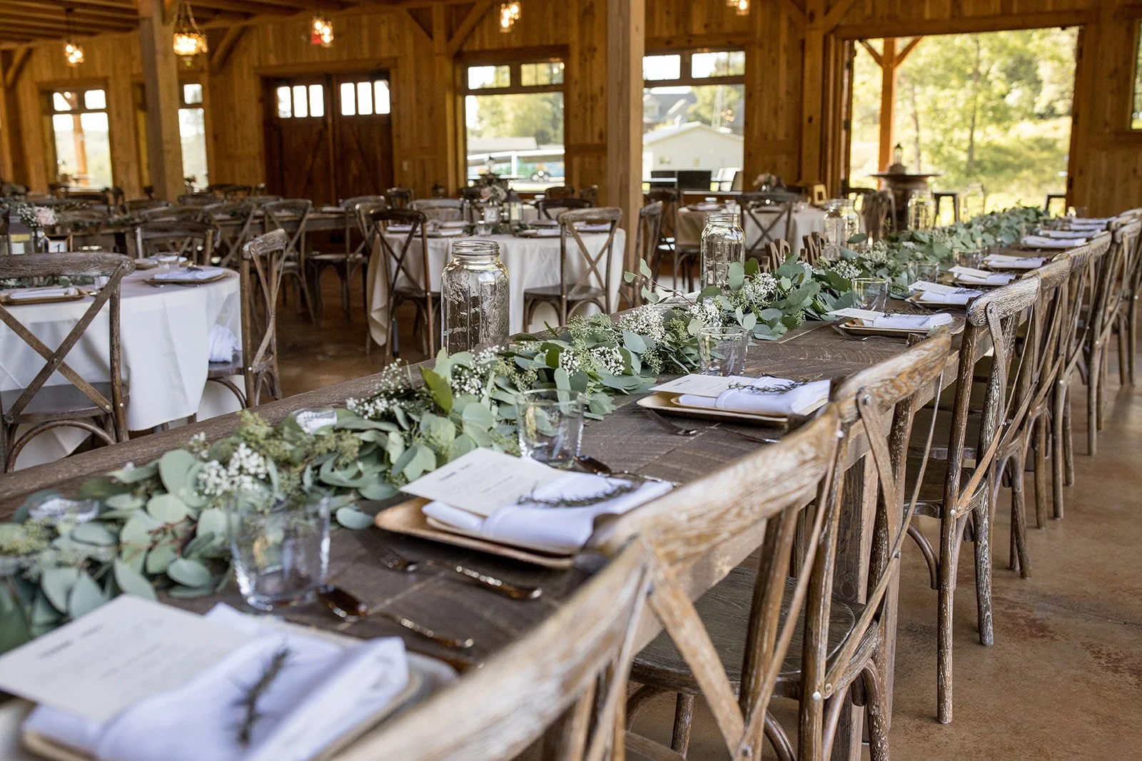 Harvest tables are great because the couple gets to be surrounded by their people, and it is better for conversation among the whole wedding party!