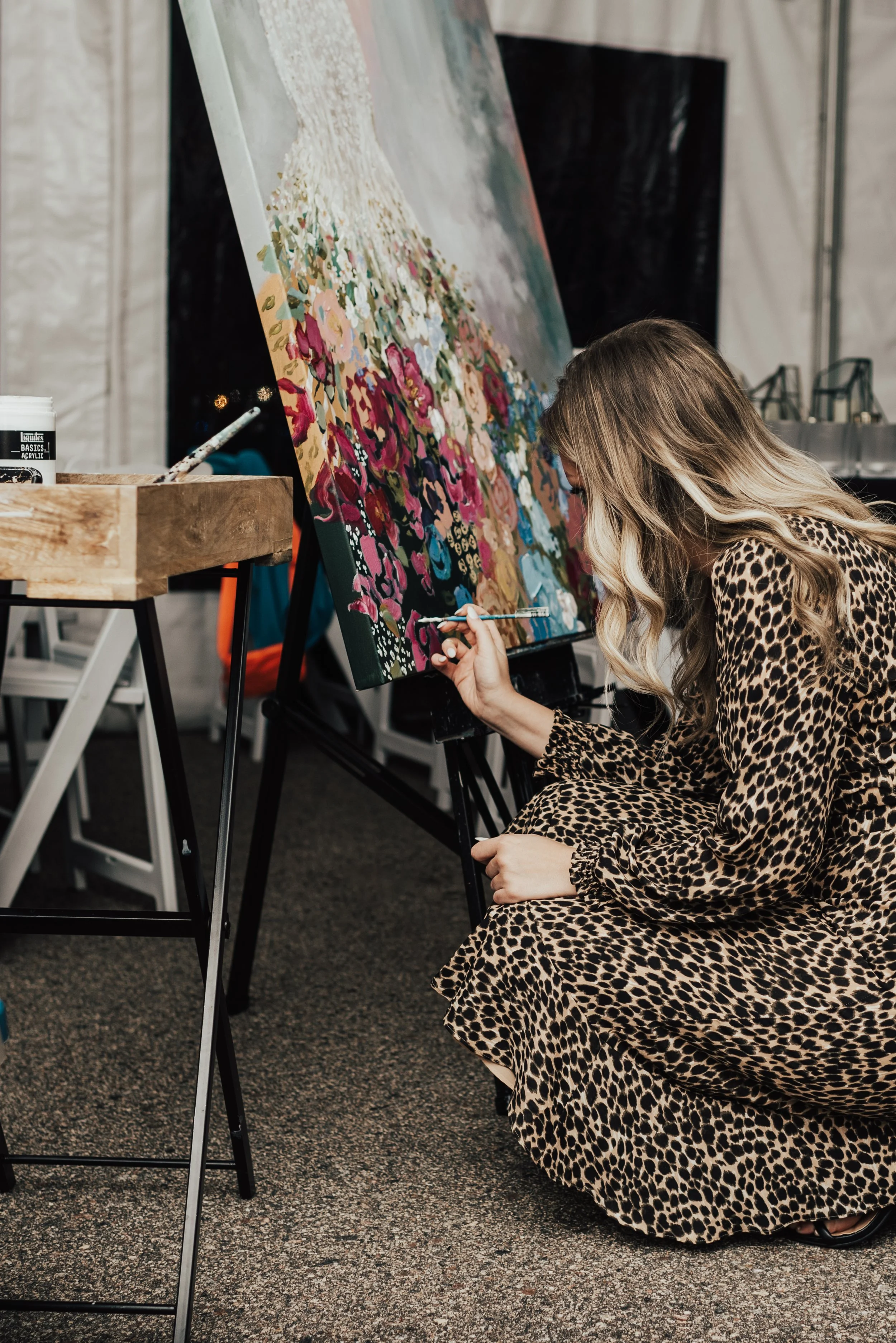 I love when our couple decided to get a live wedding painter! This wedding in particular the groom surprised his wife with a painter, and she did a replica of her dress and bouquet!